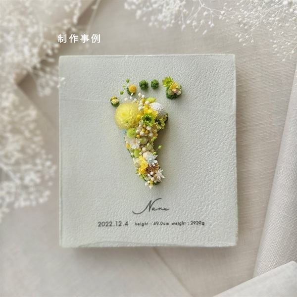 ドライフラワー、プリザーブドフラワーを使って足型それぞれのカタチをそのまま原寸大でお作りいたします。