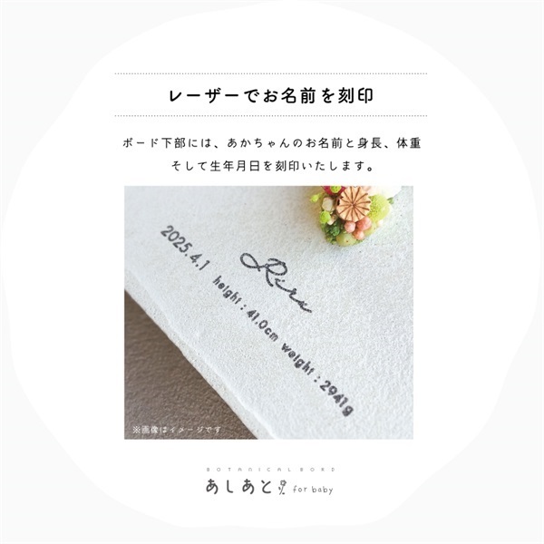 作品のボード裏面にあかちゃん宛てのメッセージを刻印できます!