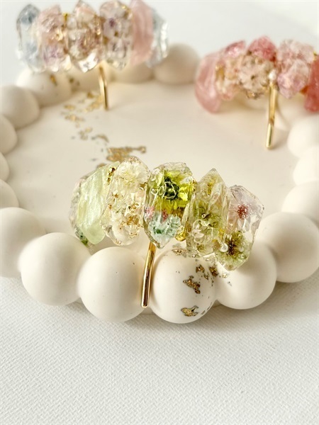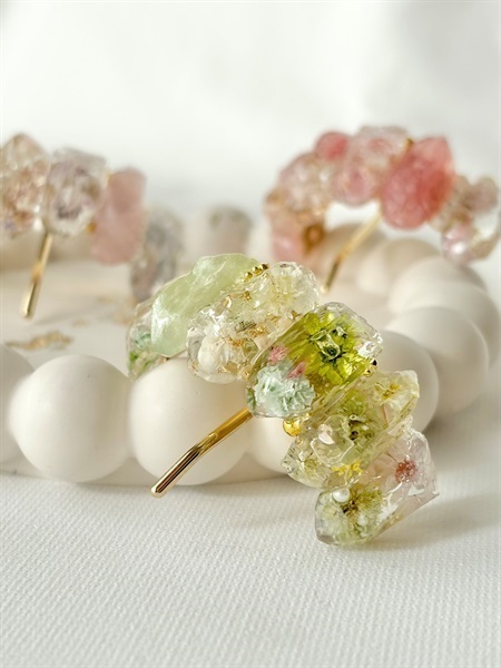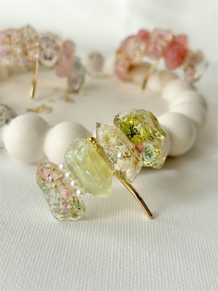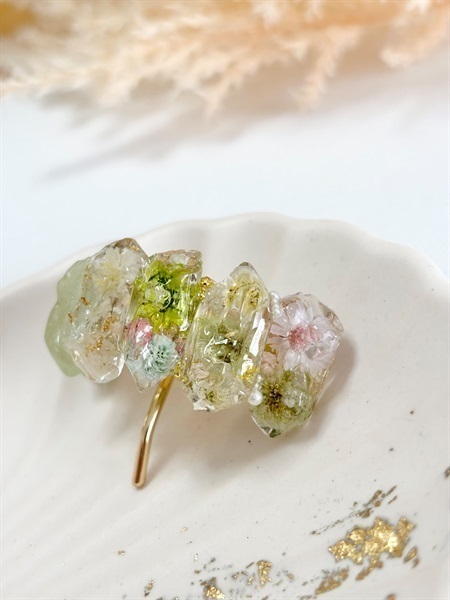 鉱石のポニーフック(グリーン)|本物のお花を閉じ込めた レジンアクセサリー