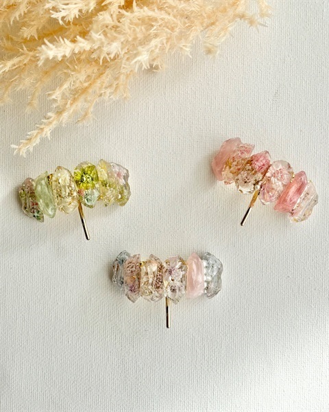 本物のお花を閉じ込めた、鉱石のようなポニーフック。