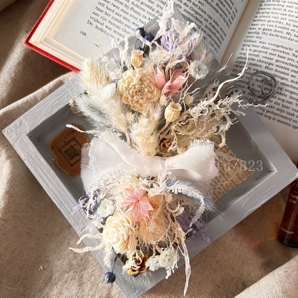 ウエディングブーケでバレリーナブーケというものがございます。そんなブーケをコンパクトに表現した壁飾りflowerです。置いて飾って頂いてもOKです♪