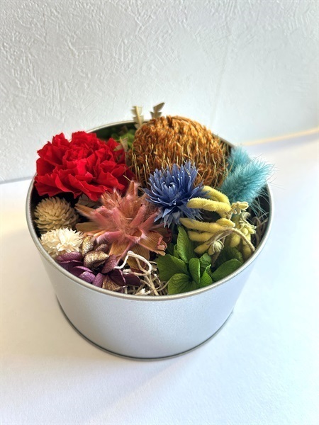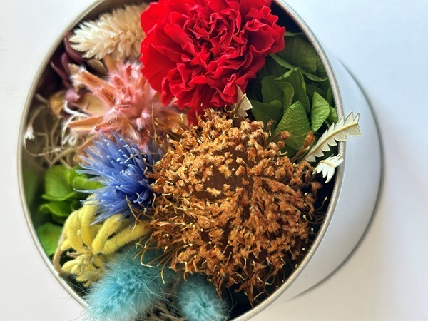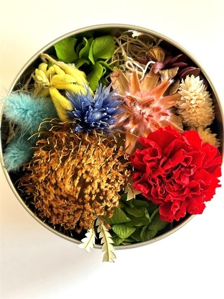 ・本作品は、手作りのハンドメイド品です。そのため、色味、花材の配置、形やサイズなどに、掲載写真と多少の違いが生じる場合がございます。