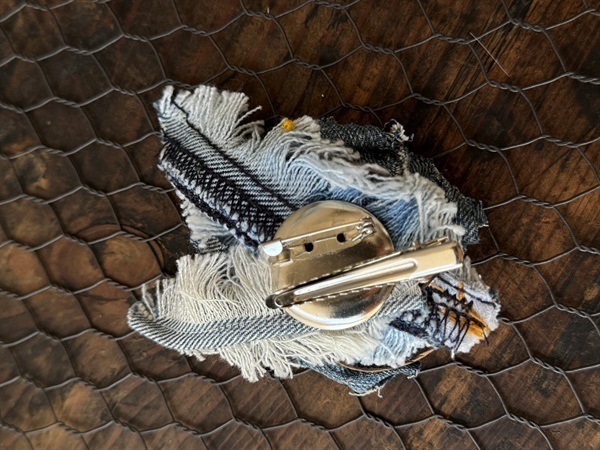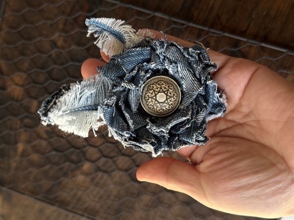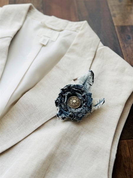 カジュアルだけどエレガントなデニムスタイルに、カチッとしすぎないジャケットスタイルに付けたいデニムコサージュ。