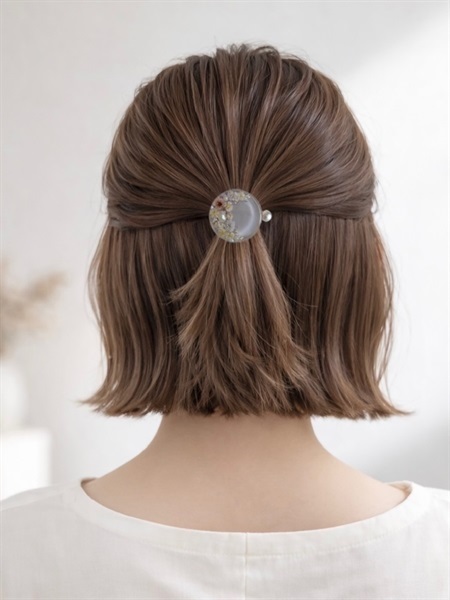 さっと結ぶだけで、髪にさりげない華やかさを。忙しい日にも取り入れやすいアクセサリーです。