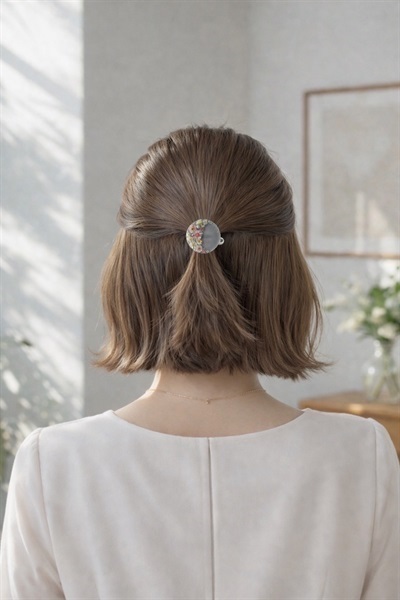 さっと結ぶだけで、髪にさりげない華やかさを。日常の中で気負わず取り入れられるアクセサリーです。