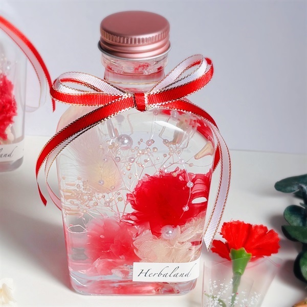 母の日の象徴でもあるカーネーションを、一つひとつ丁寧にボトルへ閉じ込めました。