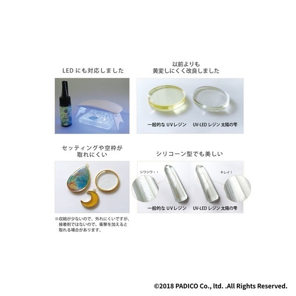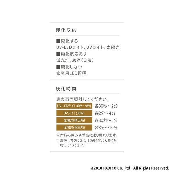 ● UV-LEDライト(405nm)でもUVライト(36W)でも硬化する1液性レジン。