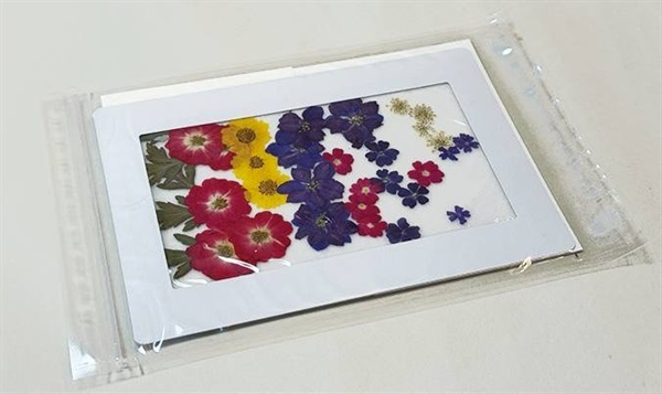 キットには、様々な色や形の押し花が入っているので、好きな素材を選んで自由にデザインできます。