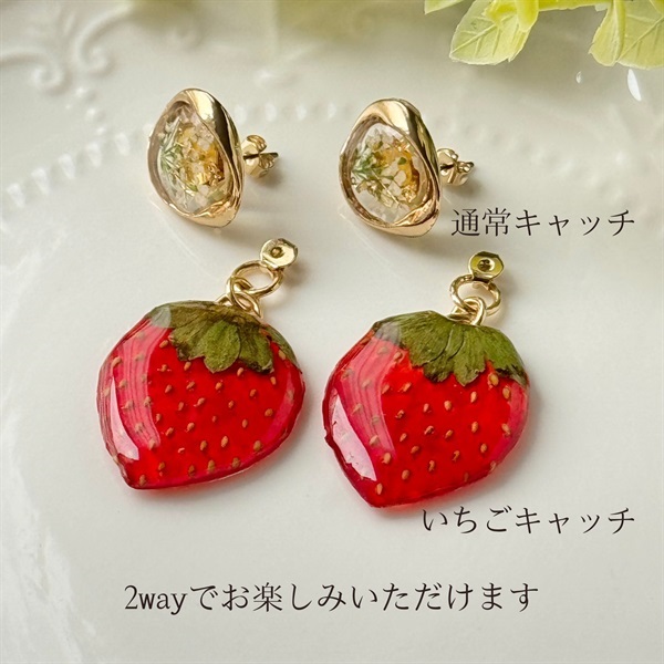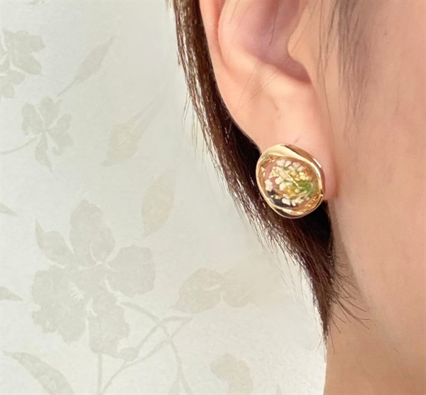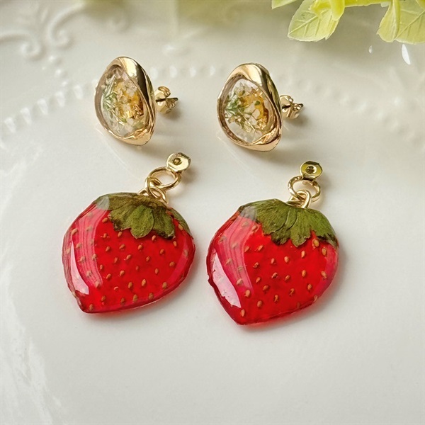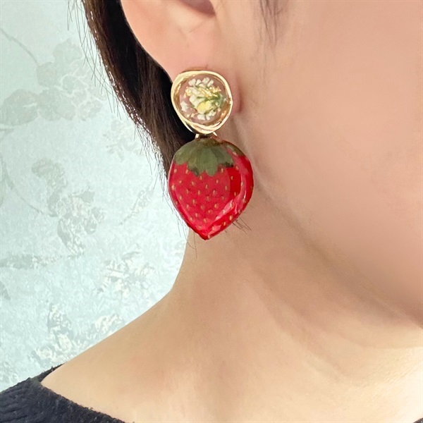 ピアスキャッチ部分にはひとつひとつ丁寧に手押しされた押しフルーツをあしらい、