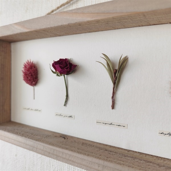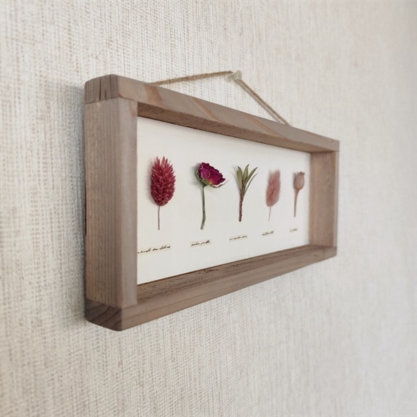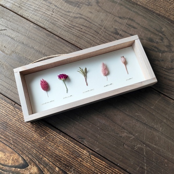 ドライフラワーや木の実を用いた「パネル作品」に特化しているのが特徴です。