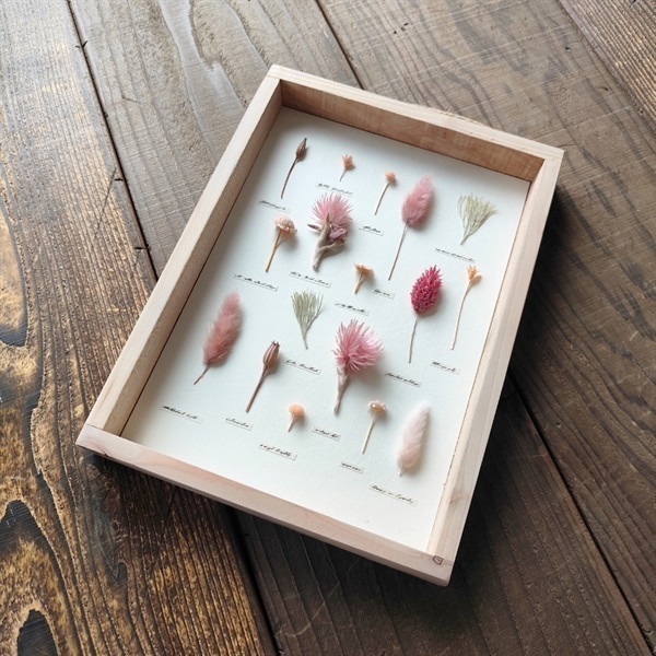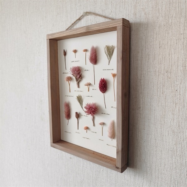 ドライフラワーや木の実を用いた「パネル作品」に特化しているのが特徴です。