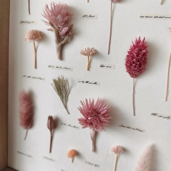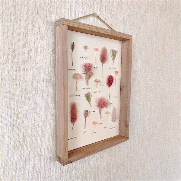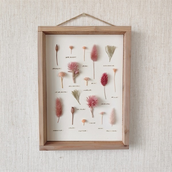 手作り額とドライフラワーが織りなす自然の造形。