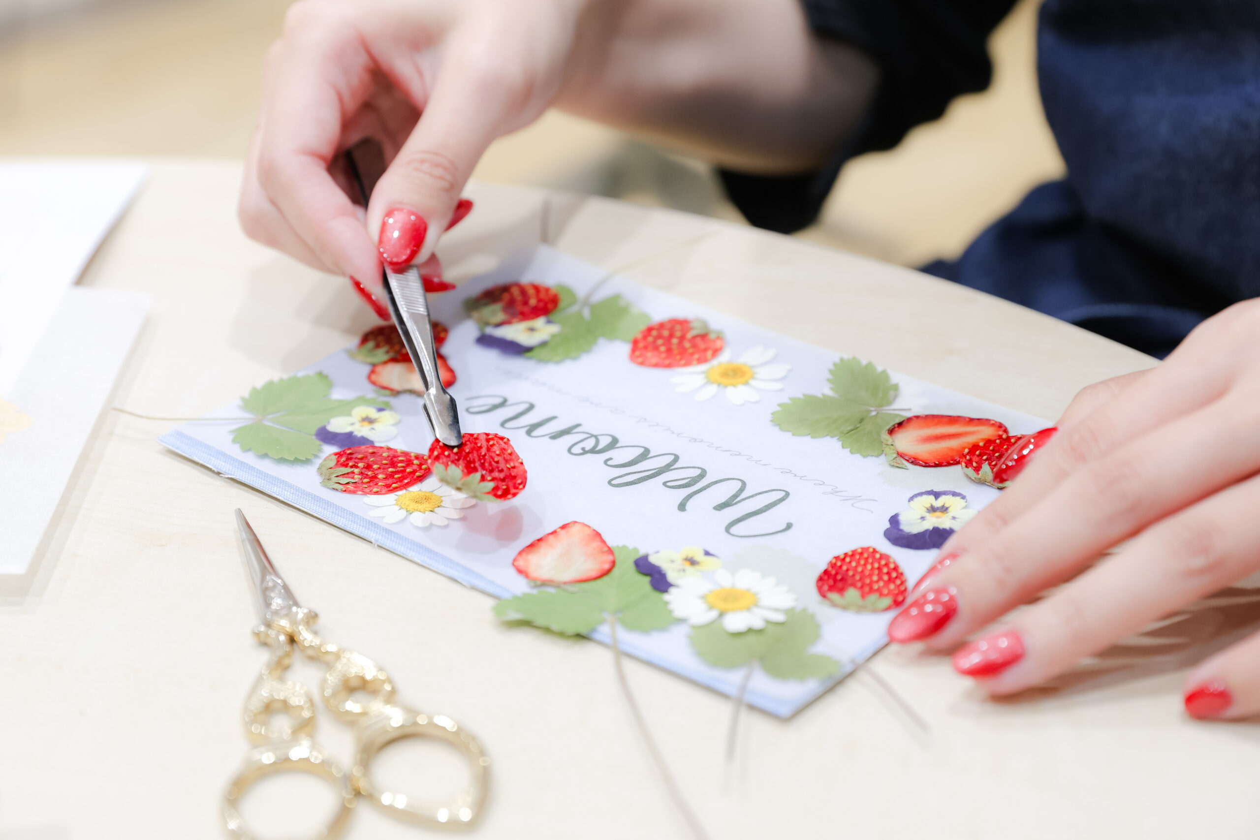 新鮮なフルーツや草花を、色鮮やかなまま閉じ込めてしまう魔法の手を持つ「押し」のプロのまつぼっくりさん。