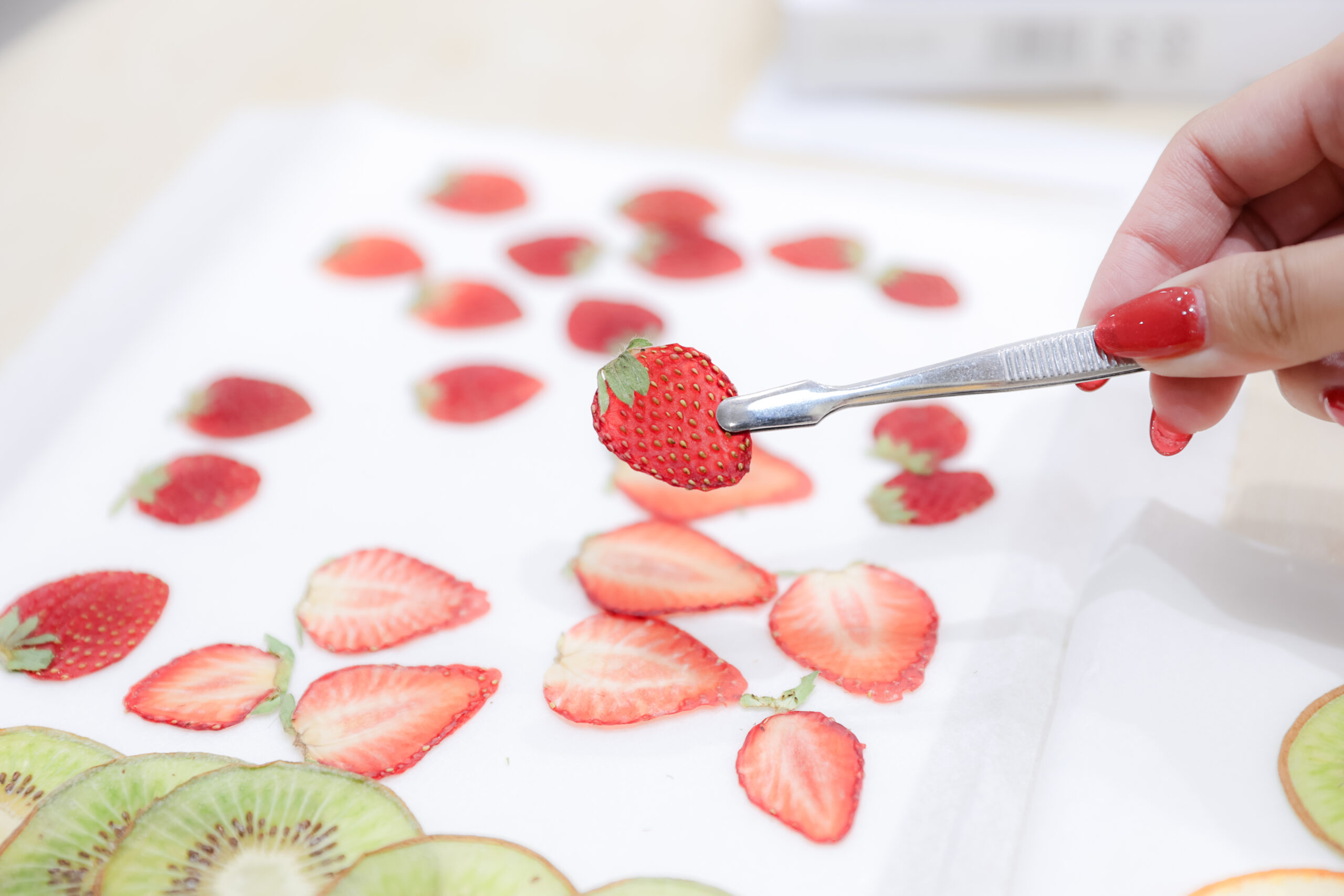 けれど裏側では、フルーツを薄くスライスしては水分を取る、取る、取る…。