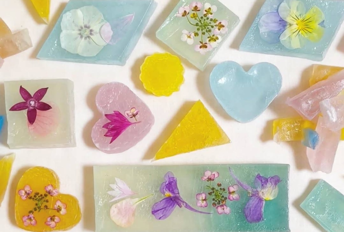HanaCocoオリジナル、ドライエディブルフラワーをあしらった琥珀糖(イメージ)