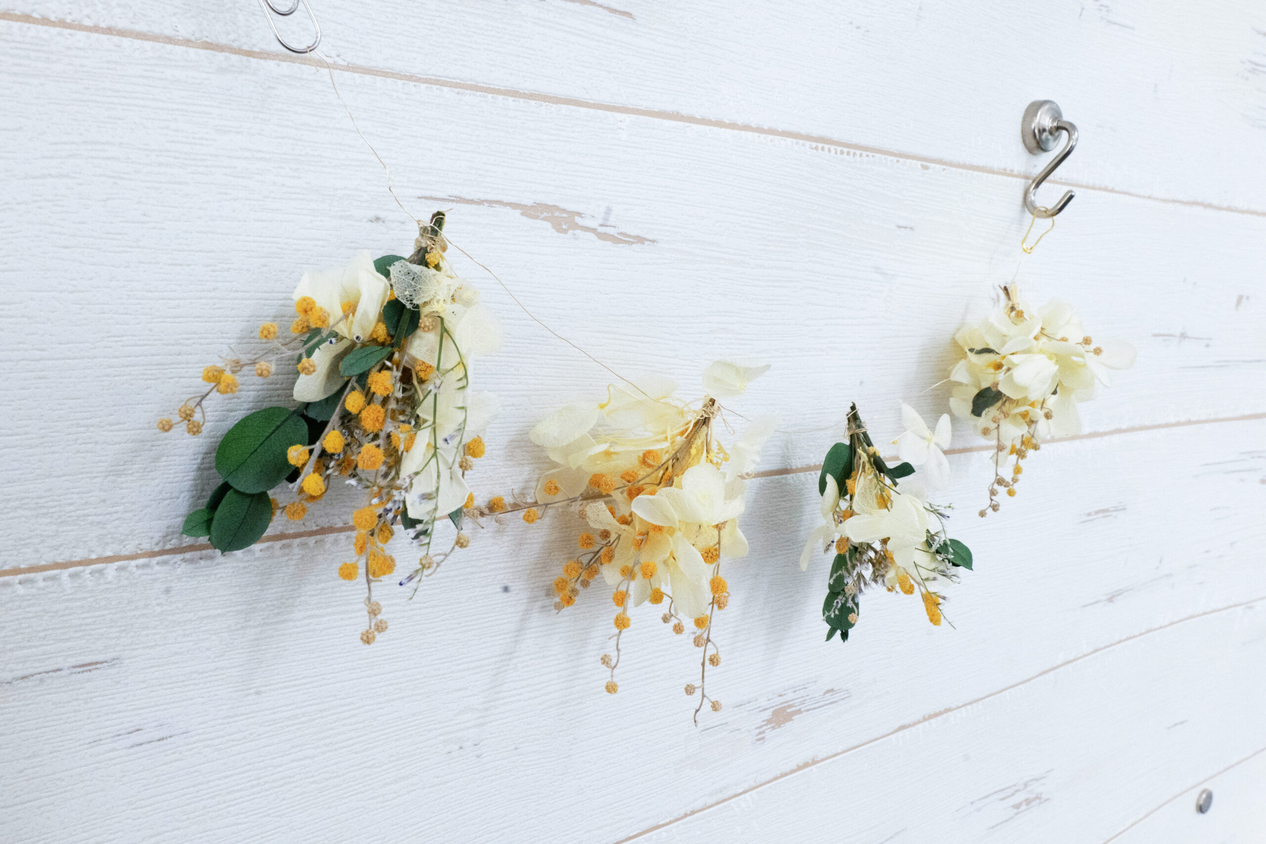 今回は、そんなミモザの「ガーランド」を作って飾る「キット」としてご紹介します。