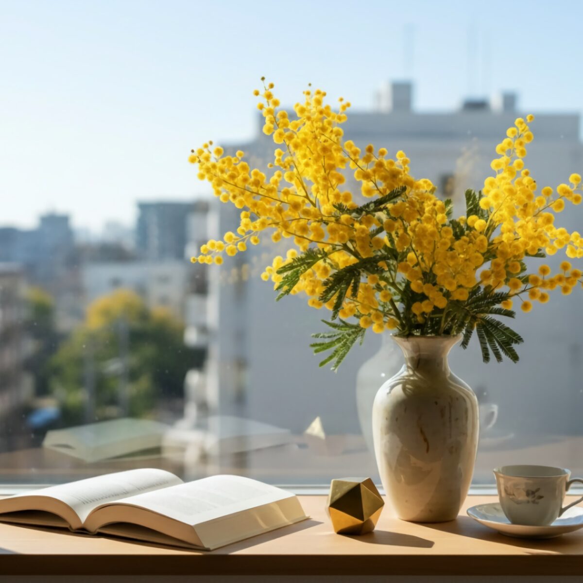 黄色い粒が集まったような姿は、可憐なのに、どこか元気で。
