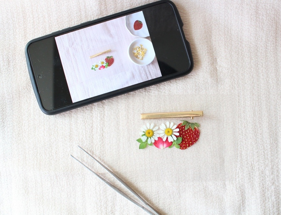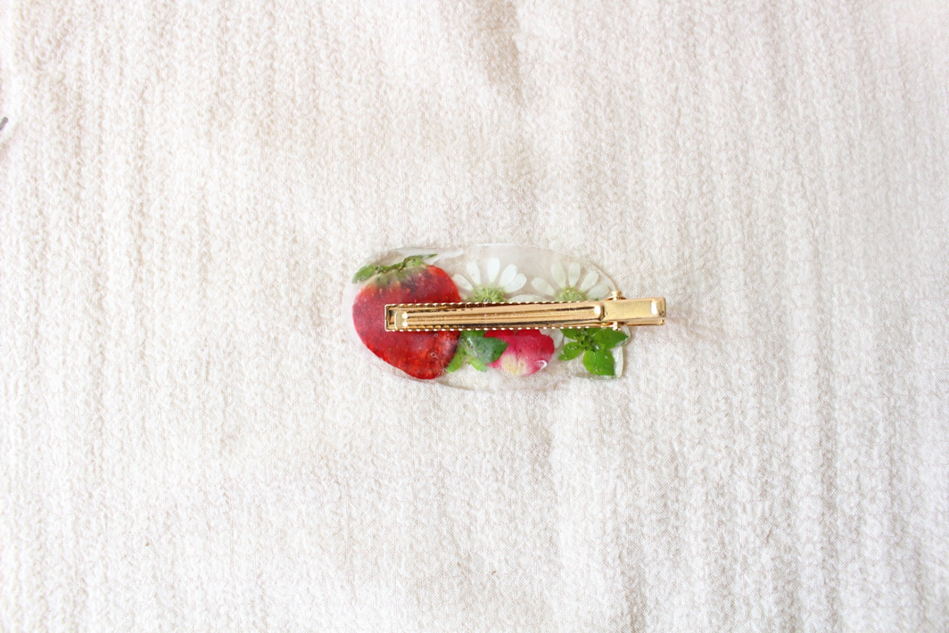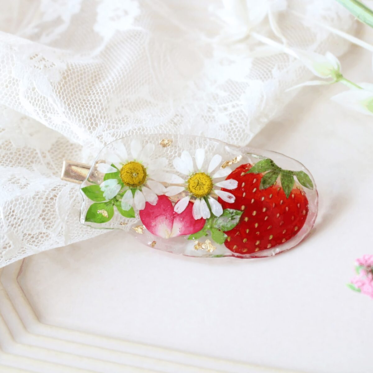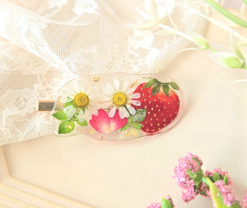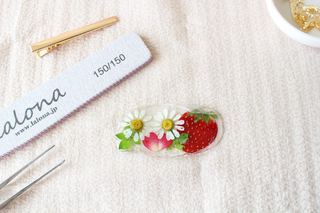 はじめてのレジンアクセサリー|本物の押しいちごで作るヘアクリップ