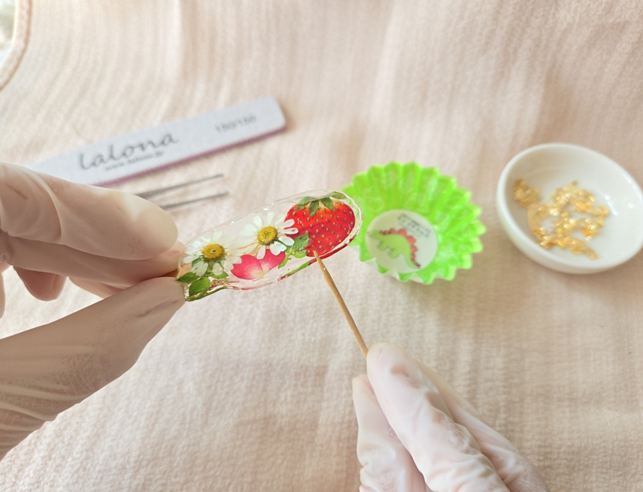 側面に爪楊枝を使ってレジンを塗り塗り。