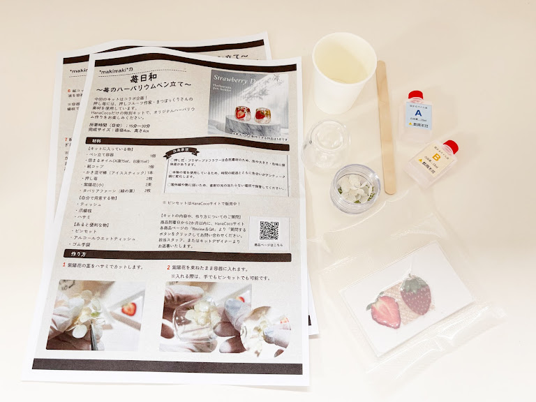 今回体験した「苺日和〜苺のハーバリウムペン立てキット」は、そうした気持ち的なハードルをほとんど感じさせない設計です。