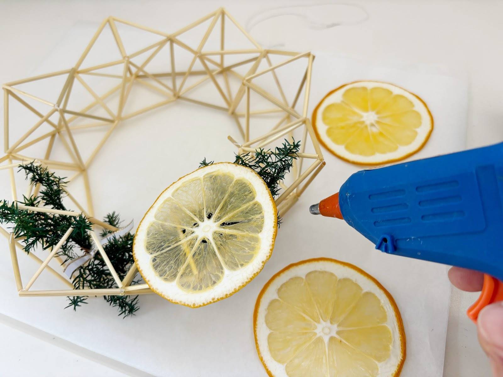 ヒンメリのリースに添えたところ、市販品にはない温度が生まれました。